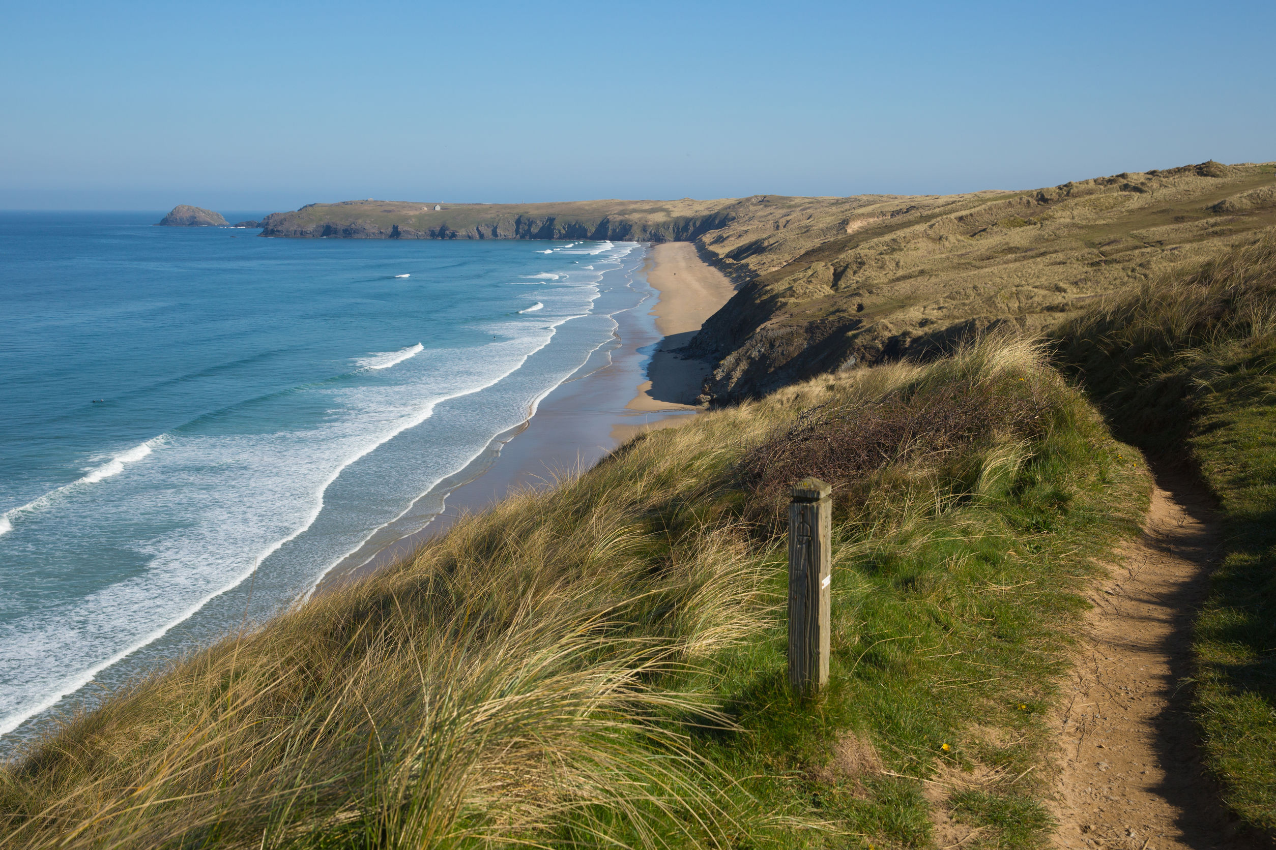 Inhammen en landtongen leiden naar Perranporth Beach. Vanaf daar zijn de overblijfselen van tinmijnen vaak verspreid over het landschap. Paden over kliffen leiden langs Porthtowan naar de haven van Portreath. Het pad gaat nu een paar kilometer langzaam omhoog voordat het afdaalt naar een ‘Hell’s Mouth’, een spectaculaire bres in de kliffen.